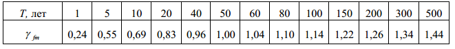 (п. 8.11 – ДБН В.1.2-2-2006 “Навантаження та впливи”). Визначається залежно від заданого середнього періоду повторюваності Т за табл. 8.1.