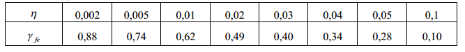 γfе – коефіцієнт надійності за експлуатаційним значенням снігового навантаження (п. 8.12 – ДБН В.1.2-2-2006 “Навантаження та впливи”). Визначається за табл. 8.3 залежно від частки h, протягом якої можуть порушуватися умови другого граничного стану.
