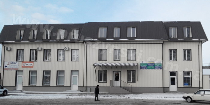 Вентильований фасад офісного центру із застосуванням профнастилу (м. Полтава)