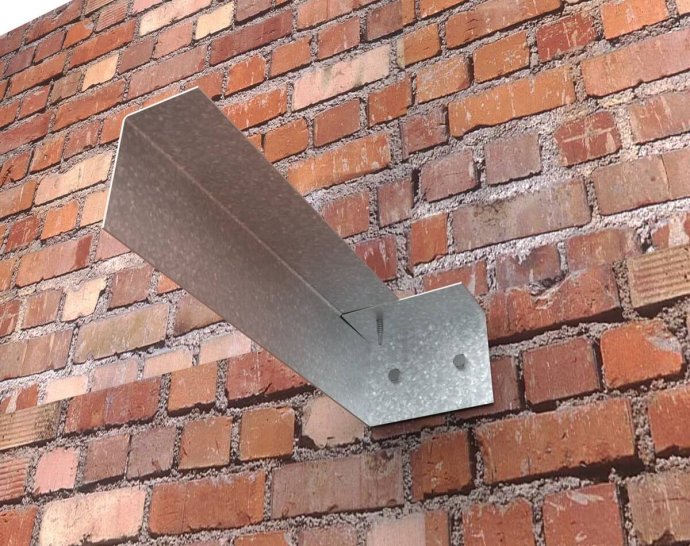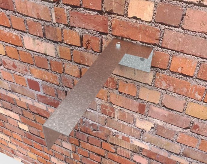 розрізати верхню полицю; відігнути її на 90°; закріпити до стіни за допомогою дюбелів; зафіксувати згин за допомогою саморіза по металу.