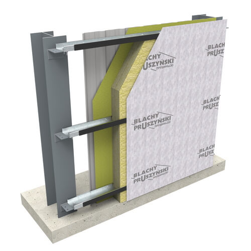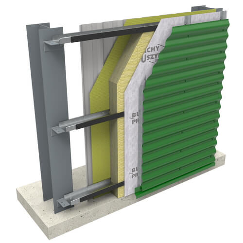 Проклеєна між собою пароізоляційна плівка притискається до стінового прогону внутрішнім профнастилом, який кріпиться до Z або С-профілів на саморізах. Тип внутрішнього профнастилу визначається проектною документацією та безпосередньо залежить від кроку стінових прогонів.