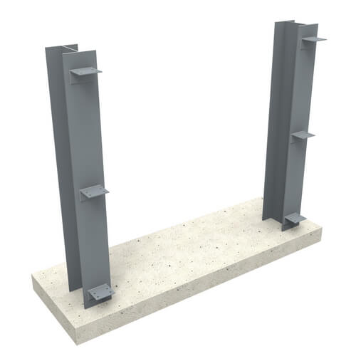 Z або С-профілі кріпляться до кутників на болтах, а діаметр болта визначається проектом (найчастіше це болти М12 або М16). Перфорація профілю під болтове з’єднання виробляється на заводі «Прушиньскі» згідно з кресленнями КМД, які виготовляють співробітники інженерно-технічного відділу нашої компанії на підставі наявного проекту.