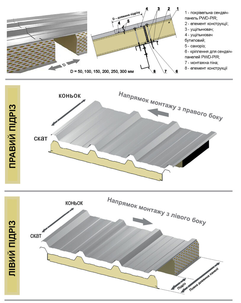 За необхідності з’єднання покрівельних панелей по довжині, нами може бути виконаний overlap (підрізка) в заводських умовах.