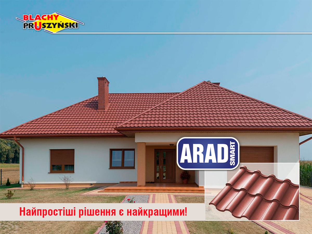 Металочерепиця модульна ARAD Smart виготовляється в стандартних двотайлових листах з європейського металу з цинковим захисним шаром з нашим фірмовим стійким захисним покриттям Purmat і Purlak, на яке підтримується гарантія 30 років.  Крім того, лише для модульної металочерепиці доступне матове покриття Topmat, що також спеціально розроблене на замовлення компанії «Прушиньскі».