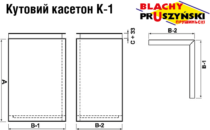 Компанія «Прушиньскі» виробляє касетони двох типів з оцинкованого металу товщиною 1,00; 1,20 і 1,50 мм з полімерним покриттям (поліестер і PVDF):
