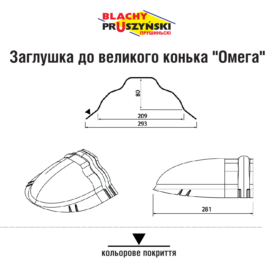 Стандартна довжина – 281 мм. Заглушки виготовлені з оцинкованого листового металу товщиною 0,5 мм із захисним покриттям.