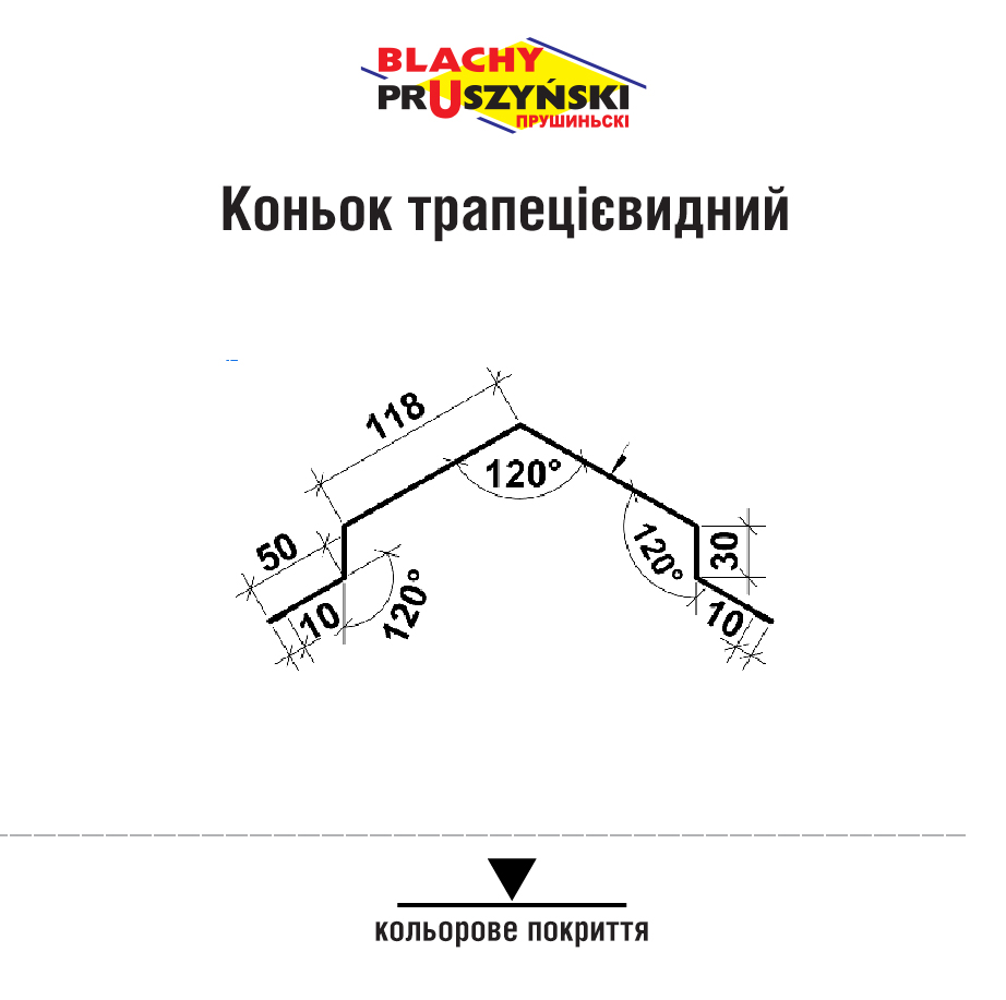 Довжина цих коньків – 2000 мм. Планки виготовлені з оцинкованого листового металу товщиною 0,5 мм із захисним покриттям.