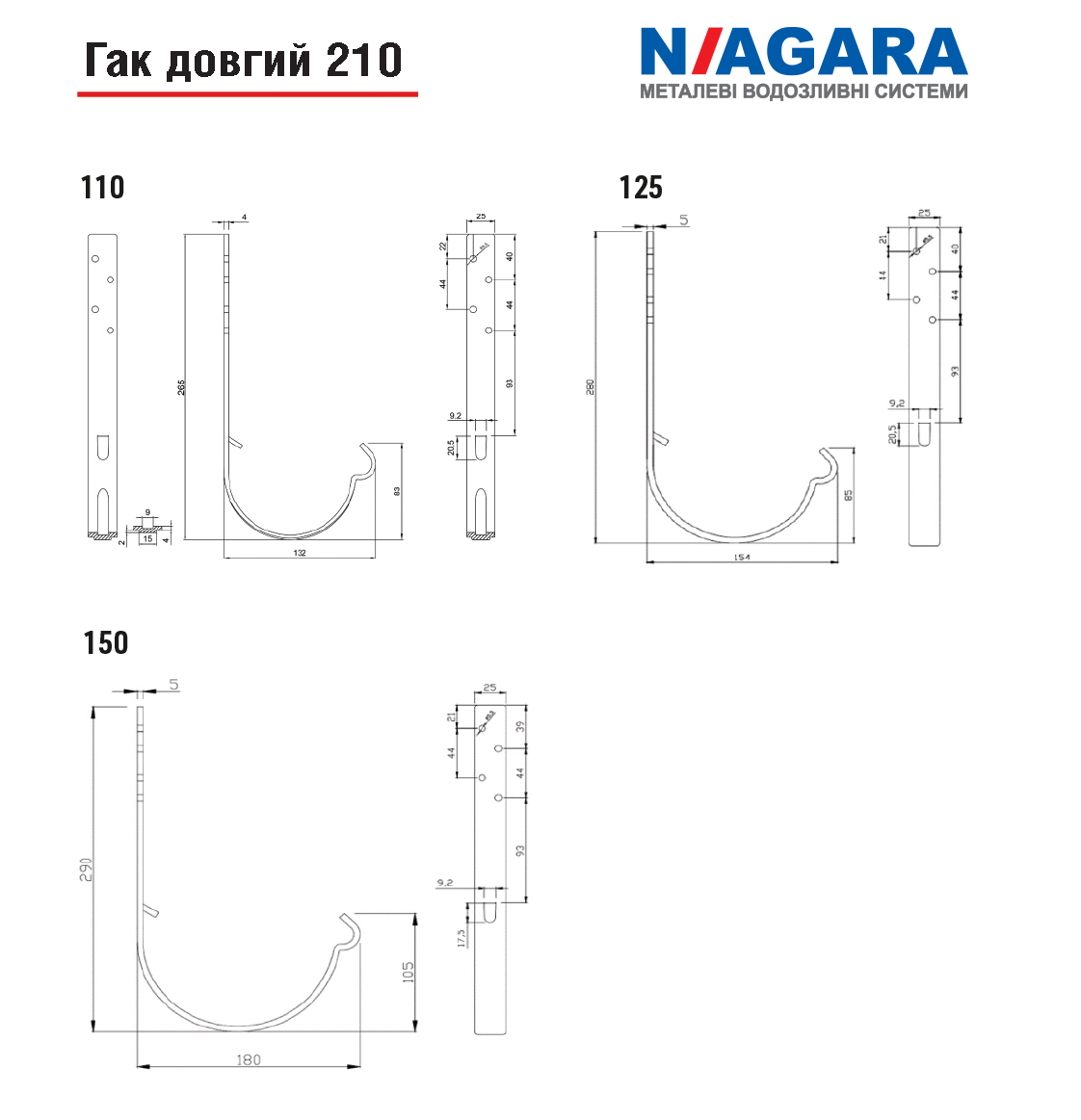 ПРИМІТКА: наразі гак довжиною 210 мм виробляється лише у розмірі 110.