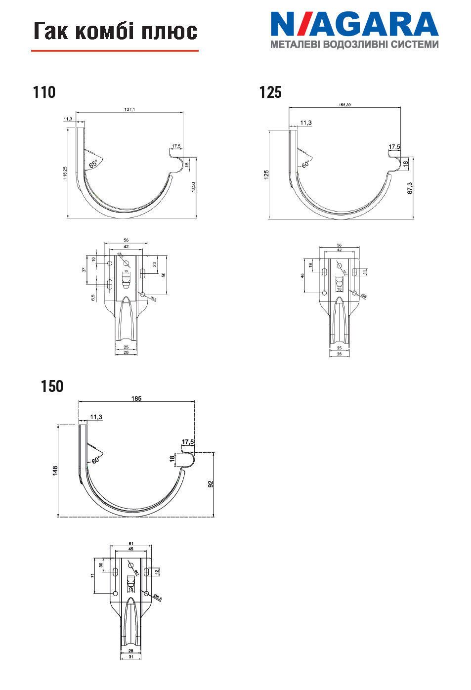 Гаки комбі плюс дозволяють встановити водостічну систему без необхідності демонтажу покрівельного покриття. Вони мають спеціальні профілі на кінці та в основі, що полегшує установку ринв зі зʼєднувачем.