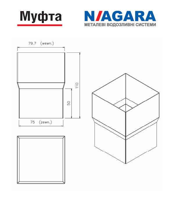 Муфта з’єднує вертикальні елементи водостічної системи. Універсальність муфти дозволяє їй ідеально поєднуватися з іншими елементами водостічної системи.