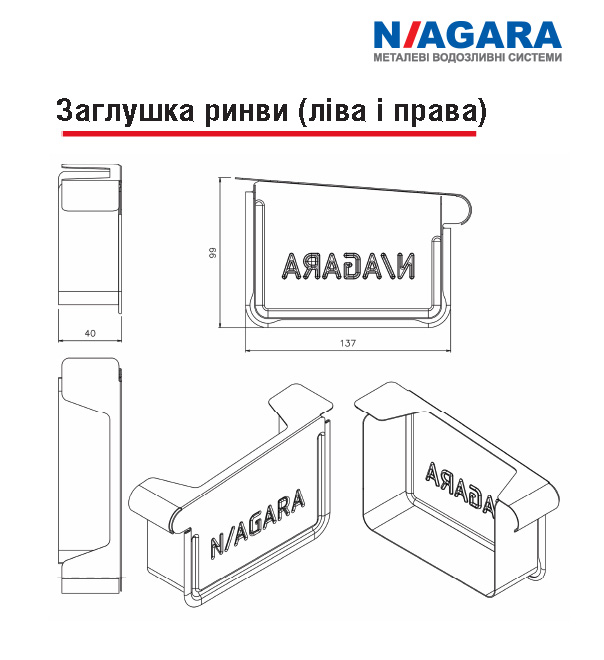 Заглушка – це елемент, який запобігає витіканню води з ринви. Встановіть торцеві заглушки на