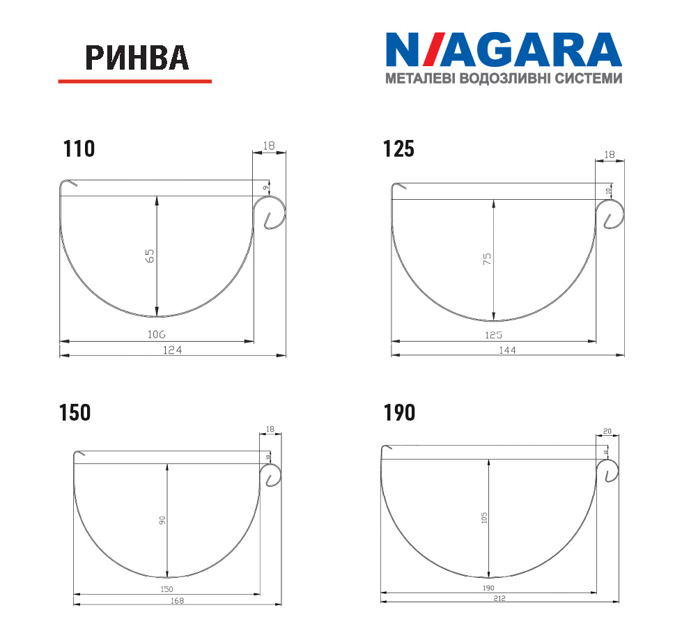 Розміри: 110 / 125 / 150 / 190.
