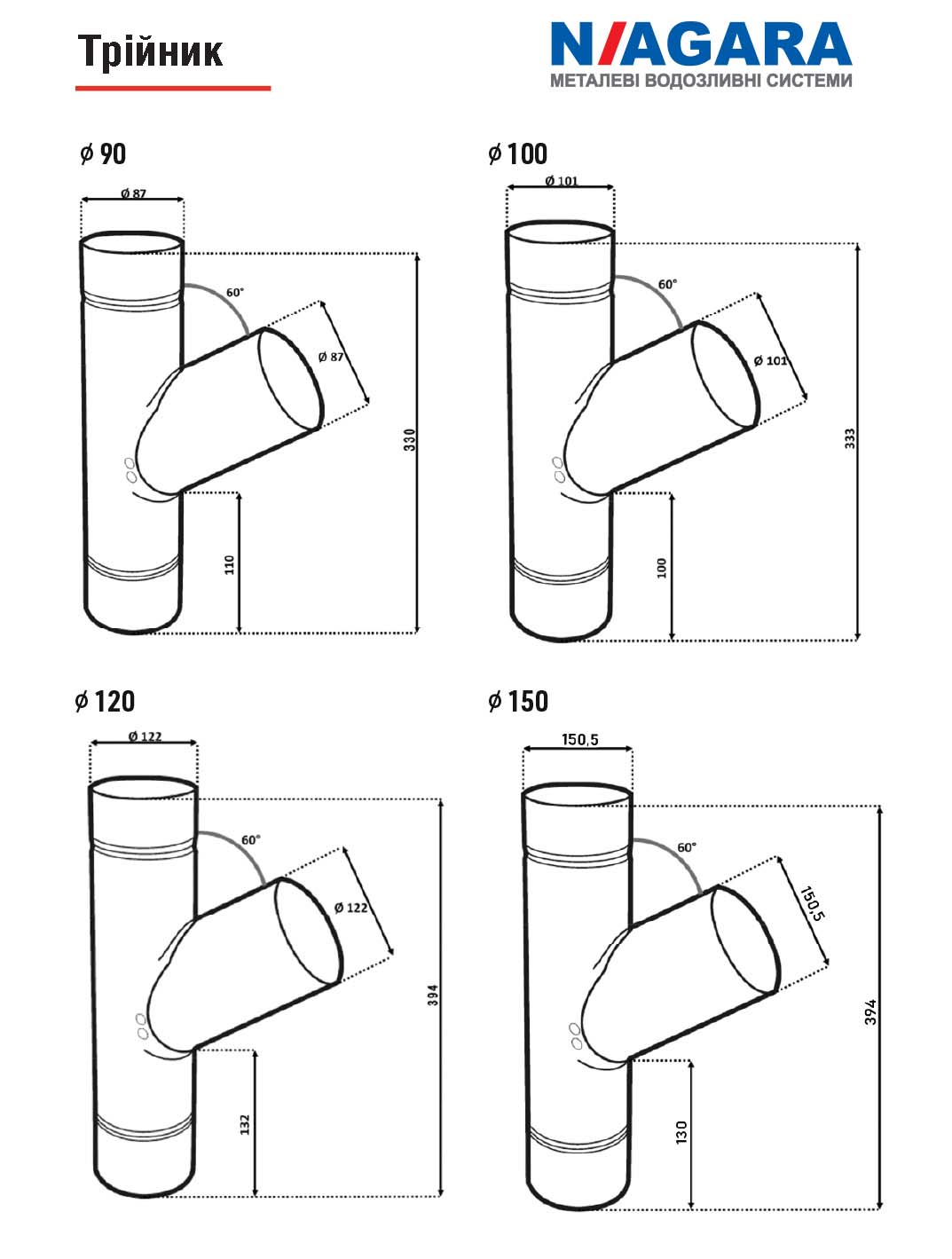 Трійник дозволяє підʼєднати дві окремі зливні труби під кутом 60о.
