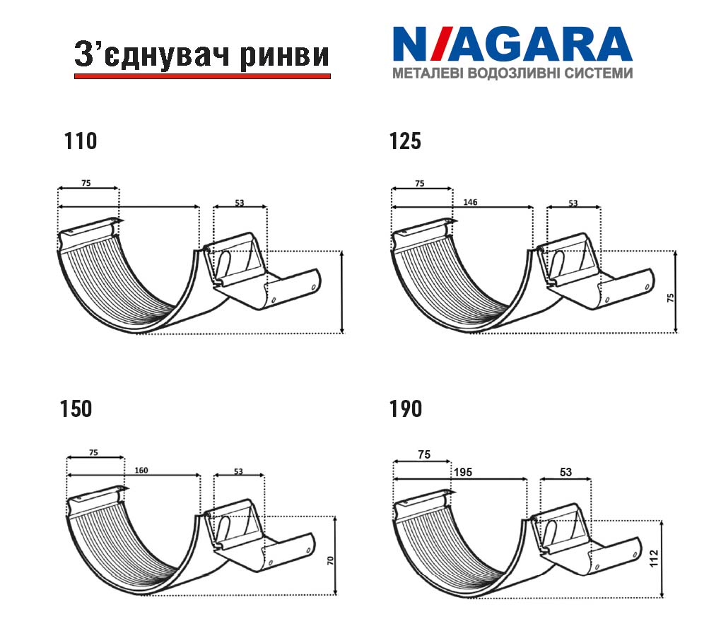 Водостоки NIAGARA – це елементи, що розміщуються безпосередньо на краю даху. Завдяки широкому асортименту кріпильних елементів (гаки, з’єднувачі, кути, заглушки) можлива установка водостоку кількома способами в залежності від конструкції даху.