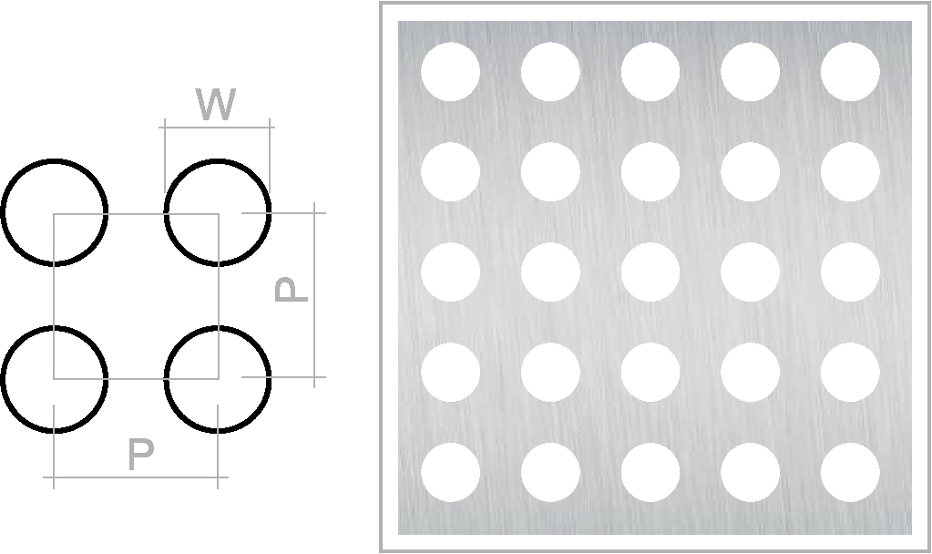 Перфоровані листи з круглими отворами виготовляються з металу найвищої якості. Перфорація виконується машинним способом з дуже високим ступенем точності, що гарантує 100% відповідність вашому замовленню.