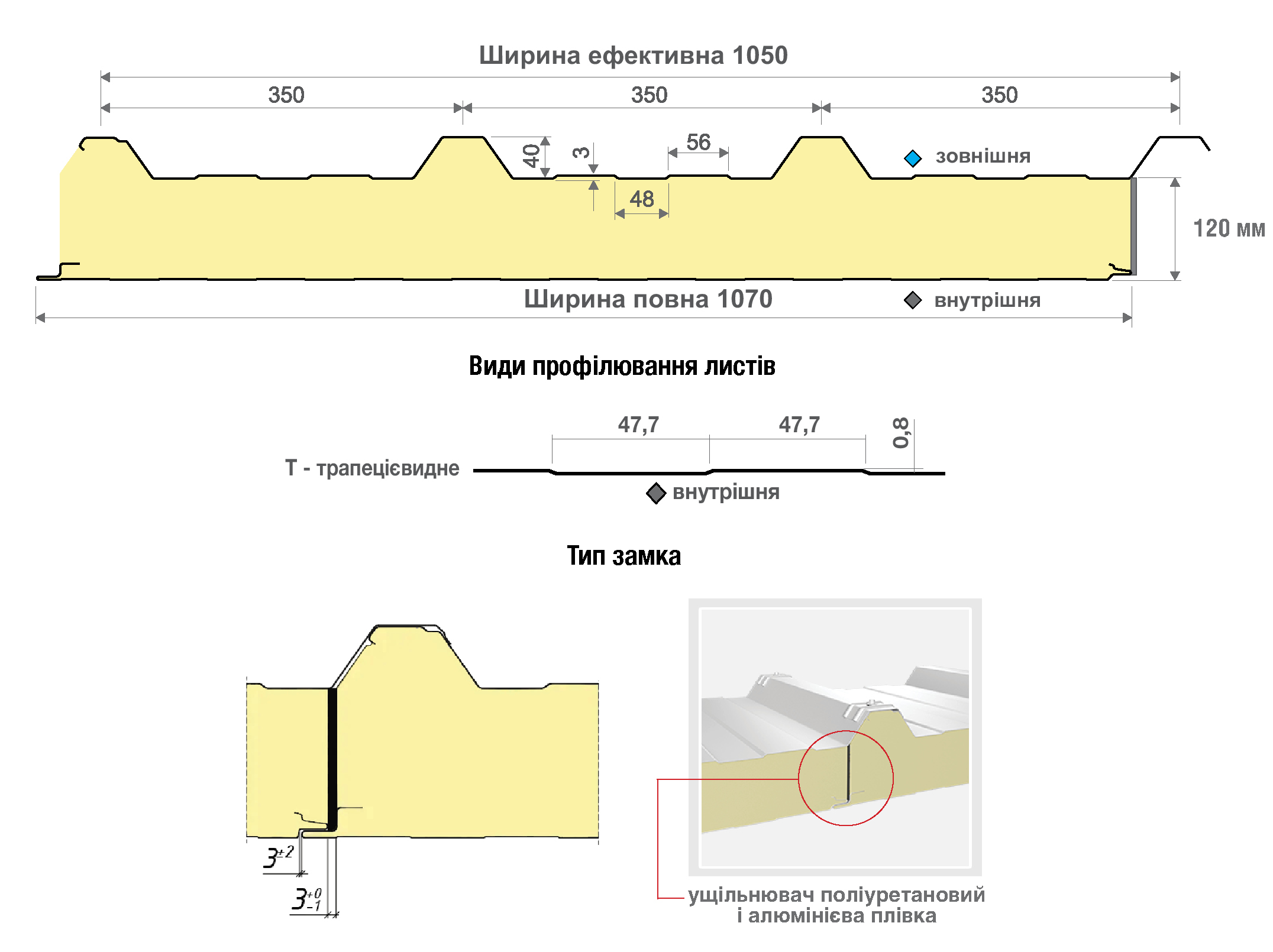 • європейського металу – зовнішній лист товщиною 0,5 мм (можлива товщина металу 0,40–0,70 мм) і внутрішній лист 0,45 мм (можлива товщина металу 0,40–0,70 мм);