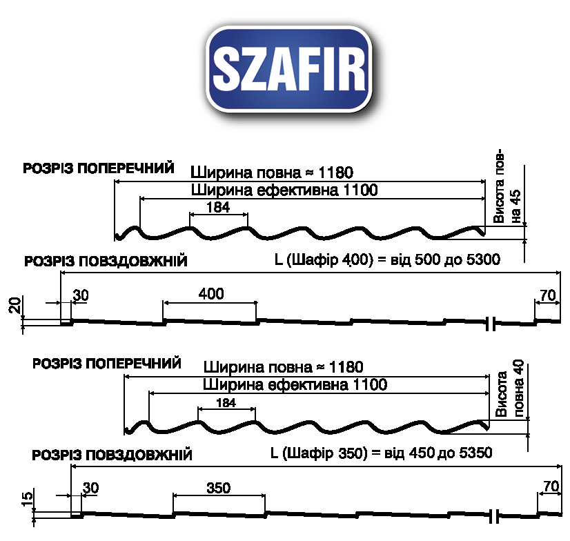 Металочерепиця SZAFIR — це традиційна металочерепиця, найбільш поширена форма на ринку України та Європи. Завдяки своїй геометрії металочерепиця ШАФІР має високі технічні характеристики.