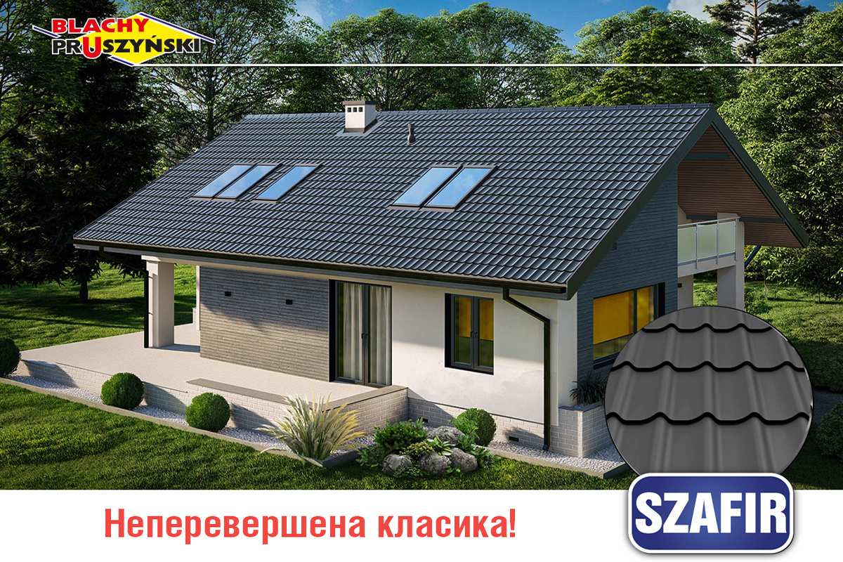 Компанія «Прушиньскі» виробляє на українському підприємстві класичну металочерепицю SZAFIR зі стандартними розмірами тайлів 350 та 400 мм й товщиною металу 0,45 і 0,5 мм з різними видами полімерного покриття. Шафір монтують на скатних покрівлях з ухилом більше 14о. Ви можете замовити у нас металочерепицю за своїми індивідуальними розмірами (з точністю до 1 см).