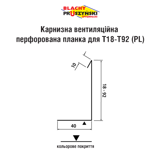 Карнизна вентиляційна перфорована планка призначена тільки для використання з нашими профнастилами Т18-Т92 (висотою від 18 до 92 мм) польського виробництва. Вона не підходить для монтажу з металочерепицею, фальцевими панелями та іншим покрівельним покриттям нашого виробництва.