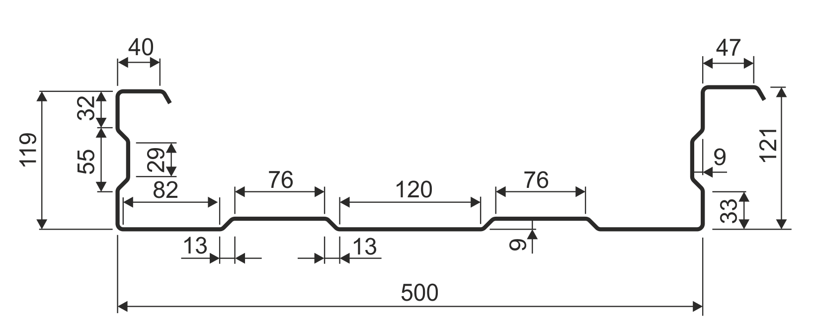 Польські ВСК виробляються зі сталі марки  S 320 GD товщиною від 0,7 до 1,5 мм. Довжина польської стінової касети – від 1,5 до 12 м.