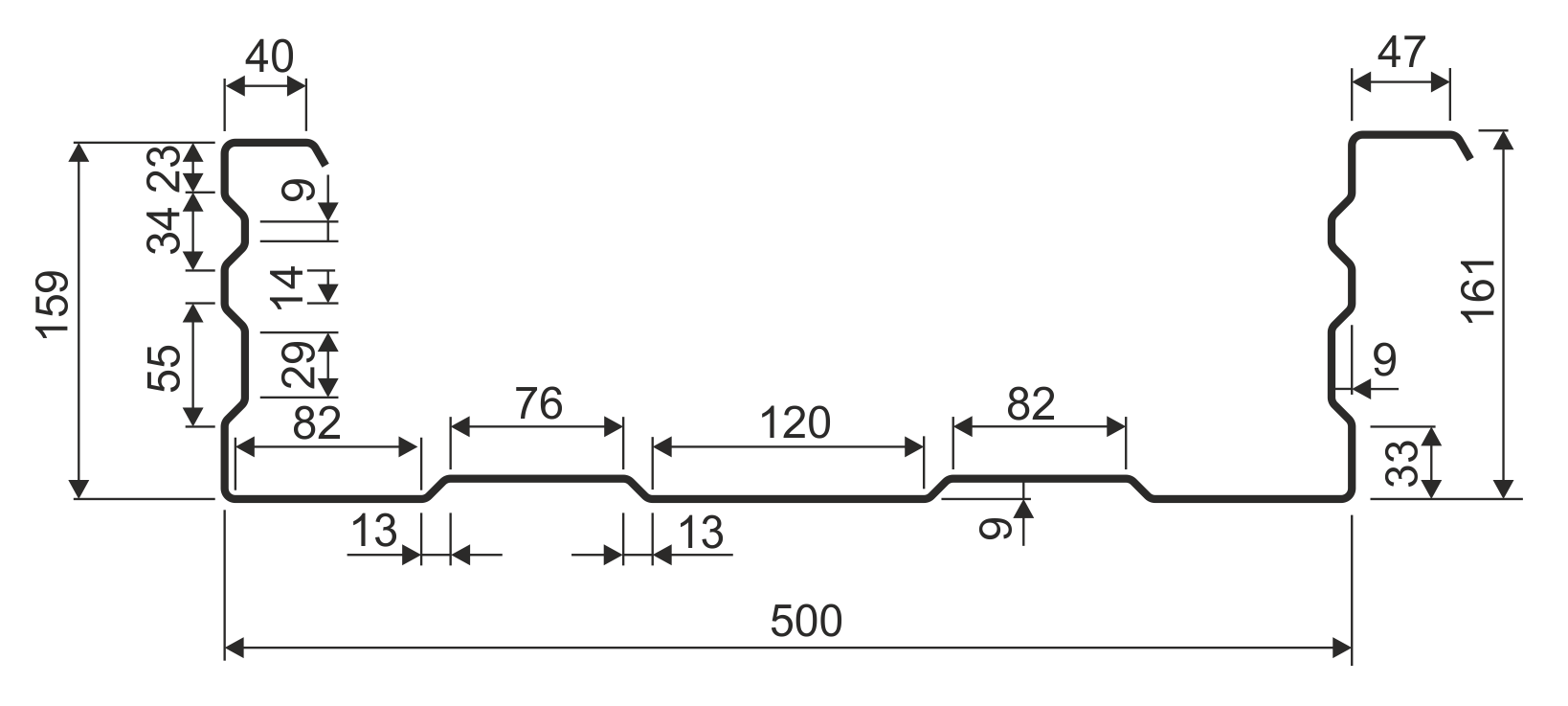 Польські ВСК виробляються зі сталі марки  S 320 GD товщиною від 0,7 до 1,5 мм. Довжина польської стінової касети – від 1,5 до 12 м.