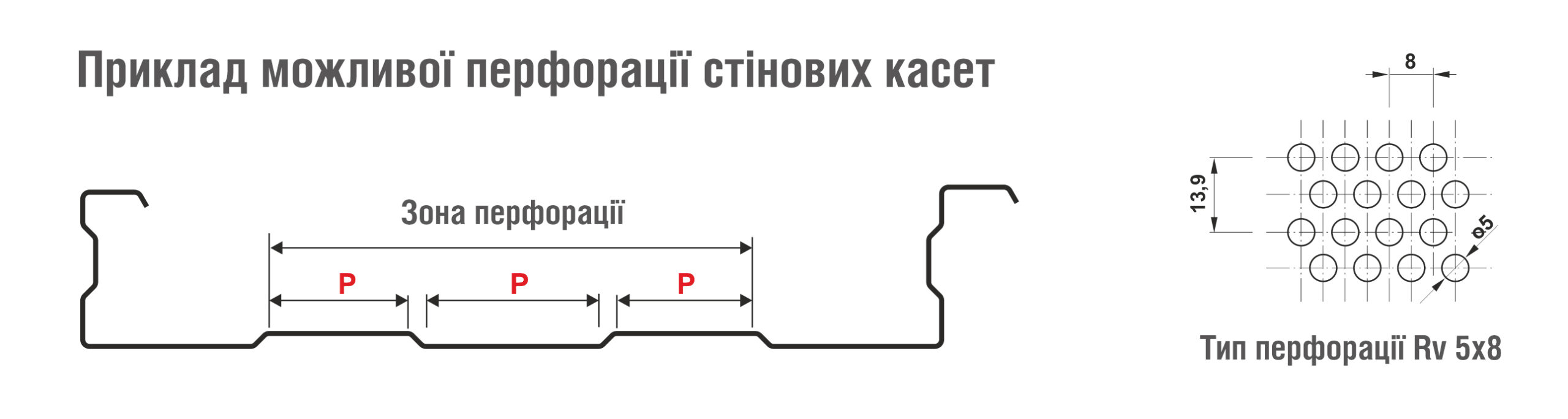 Суттєвою перевагою стінової касети над збірними сендвіч-панелями та панелями заводського виробництва є можливість перфорації касети. Можливість застосування перфорації касети дуже важлива при будівництві та проектуванні підприємств з підвищеним рівнем шуму.