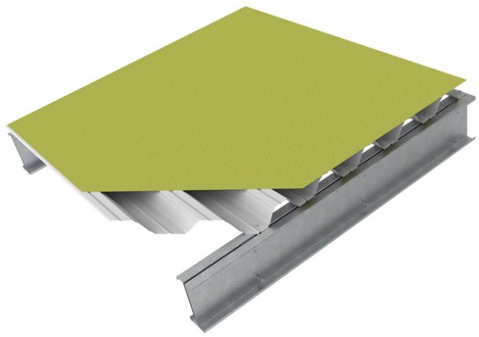 Фото 1. Несучий профнастил Т150 товщиною 0,75 мм в конструкції безпрогонної покрівлі
