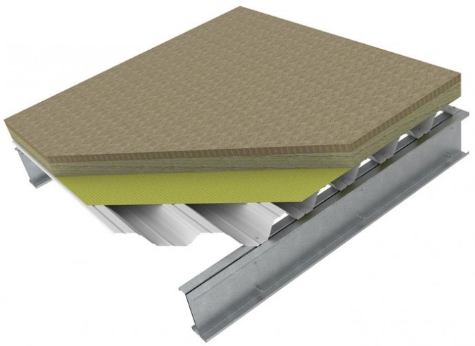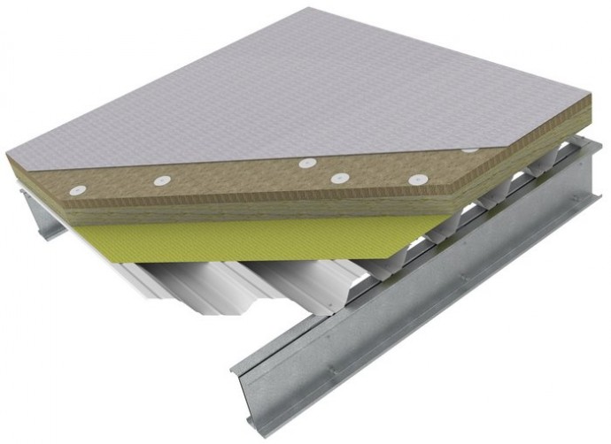 При конструктивному вирішенні покрівельної огороджувальної конструкції в безпрогонній схемі, зазначений тришаровий теплий «пиріг» укладається безпосередньо на несучий каркас, за рахунок застосування несучого профнастилу Т92, Т135, Т150 або Т160.