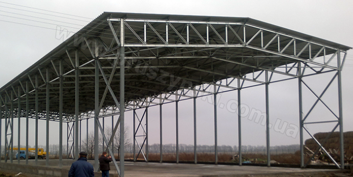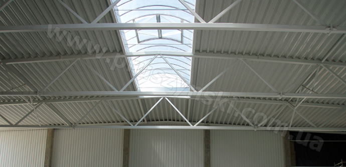 Прогонна схема припускає установку покрівельних прогонів (швелер, двутавр, оцинкований Z-профіль), на які монтується несучий профнастил.